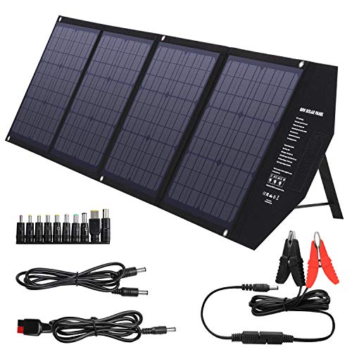 DISEÑO PARA LA MAYORÍA DE LOS GENERADORES SOLARES: Con la amplia compatibilidad, SUAOKI 80W Panel solar funciona con la mayoría de los generadores solares del mercado. El paquete incluye conectores de tamaños versátiles de CC, CC a CC, CC a Anderson y cables de alimentación CC a SAE.