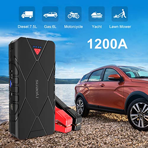 SUAOKI U18Plus Arrancador de coche 1200A, 16000mAh con Compresor aire portátil 120psi, tipo C, carga rápida USB3.0 linterna LED, hasta 7.5L de gasolina, 6.0L diesel), incluye abrazaderas inteligentes